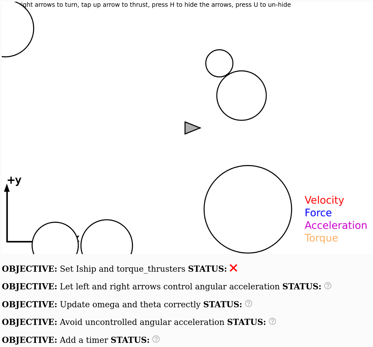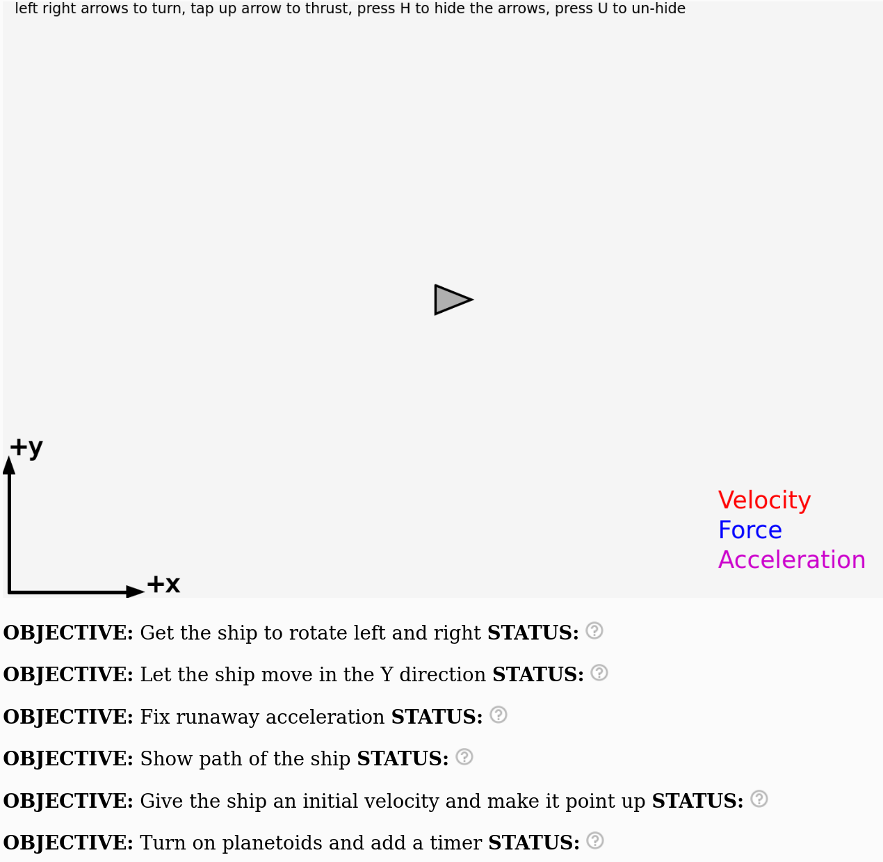 Create a simple game where an object can accelerate in the x and y directions depending on which arrow keys that are pressed